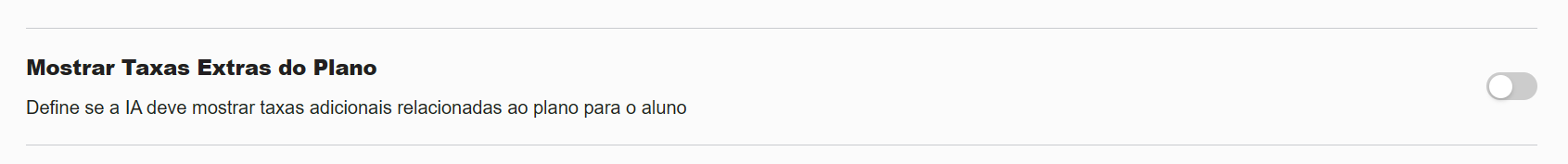 4. Ative a configuração para que a IA exiba taxas extras relacionadas ao plano para o aluno;